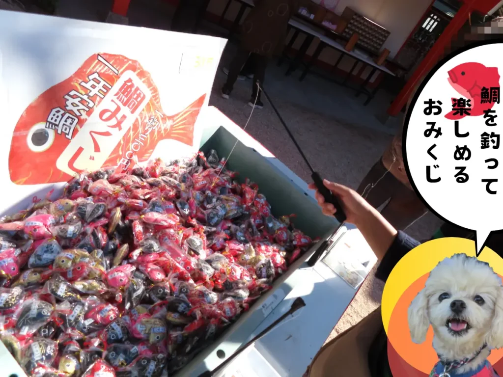 鯛みくじは“海幸彦・山幸彦”のお話と重なっていて、神話が残る神社にピッタリのおみくじ。他にもゲーム感覚で楽しめる願掛けも多く、参拝している人々の笑顔が印象的でした。