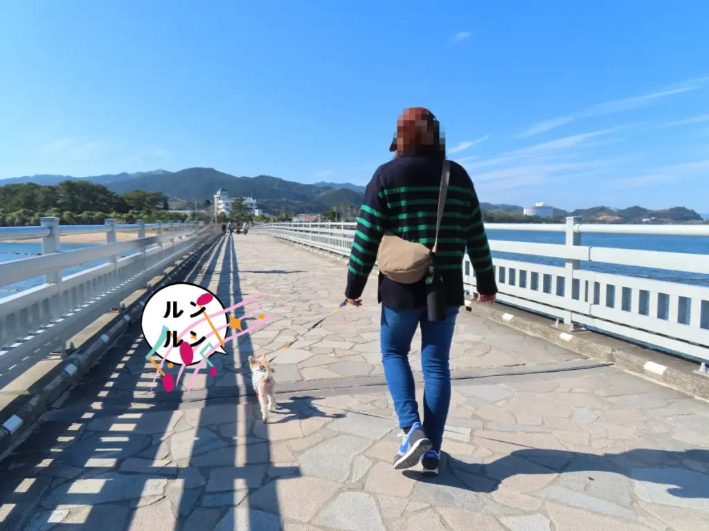 2.わんこと弥生橋を渡る